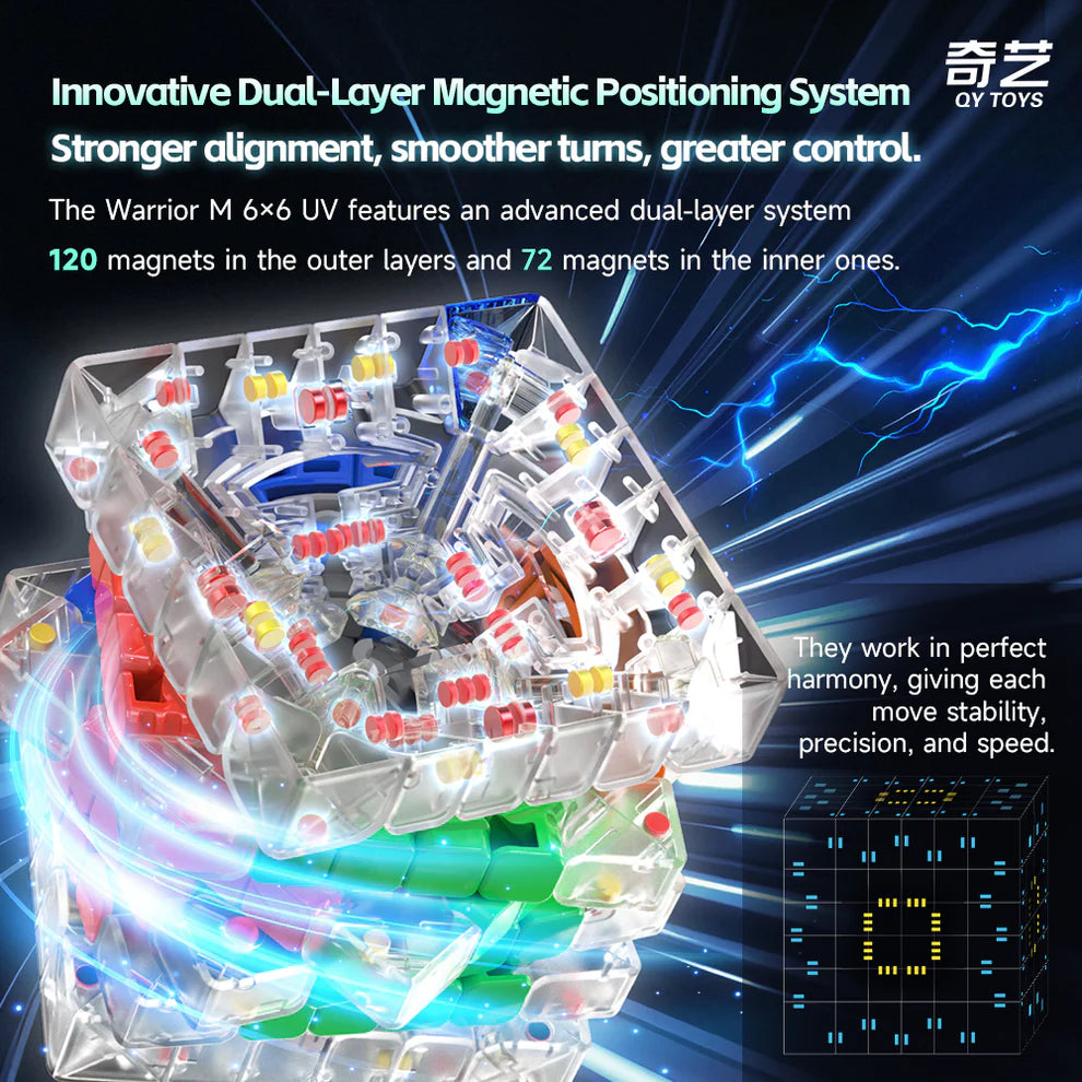 QiYi Warrior M 6x6 UV is a premium speed cube engineered for competitive cubers and enthusiasts seeking precision performance.