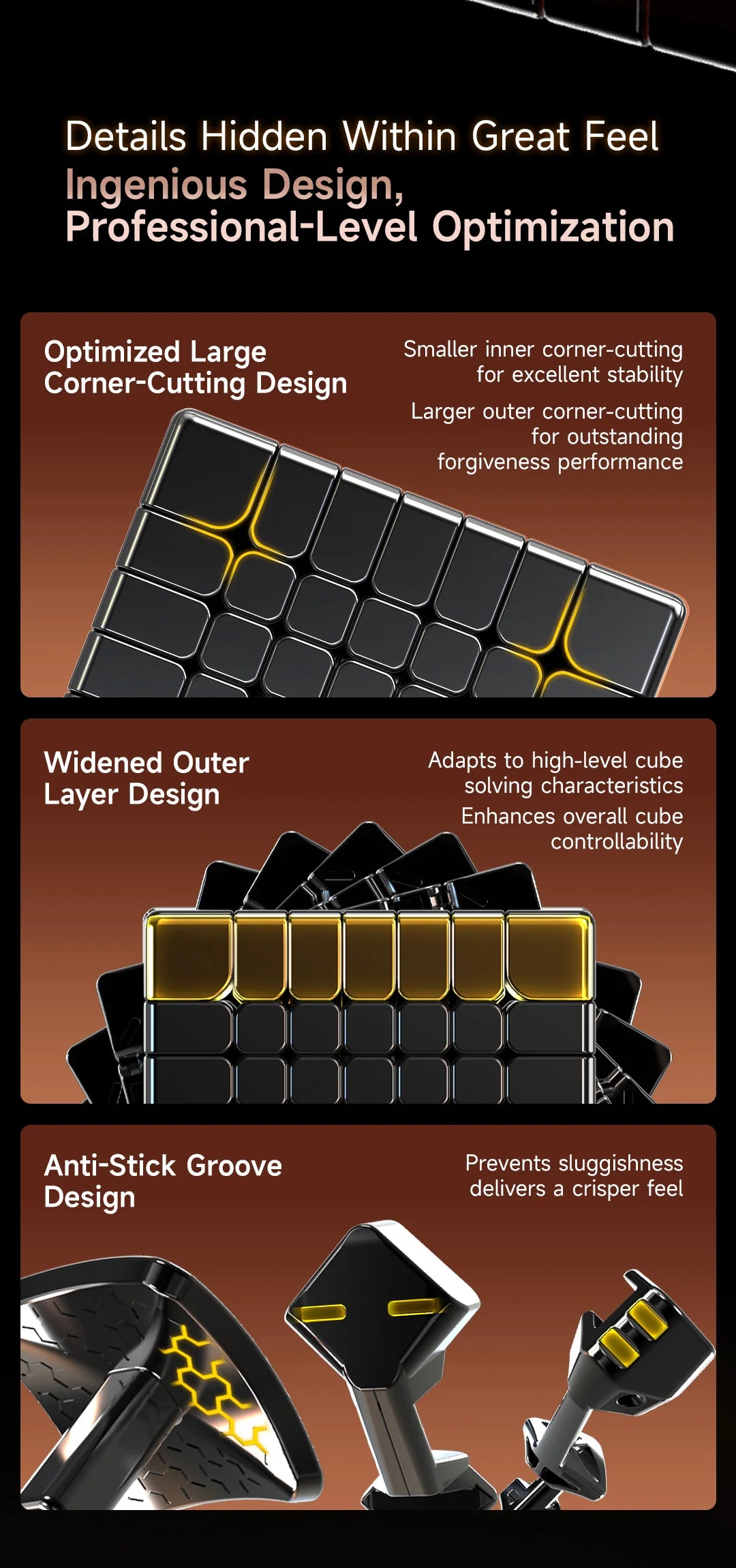 Inside, you'll discover a set of carefully placed magnets that offer enhanced stability and a smoother, more tactile solving experience. Every turn clicks satisfyingly into place, helping you maintain full control—especially useful for solvers just getting comfortable with larger cubes.